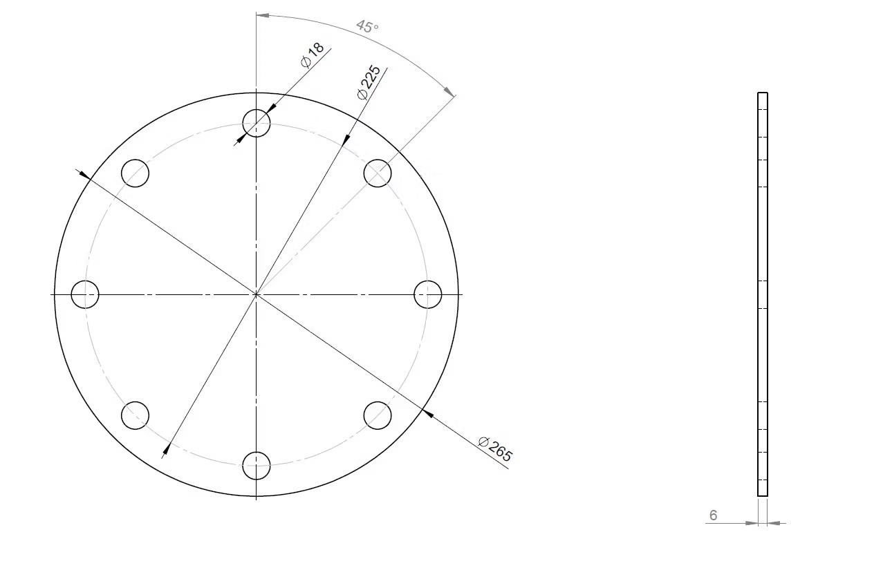 VSS sulkulevyn tiiviste halkaisija 265 mm. Keskireikä 170 mm. Pulttireikä 20 mm.